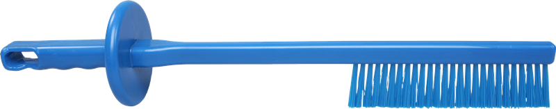 Щетка предназначена для чистки ножей измельчителей мяса, ломтерезок и другого измельчительно-режущего оборудования. Ворс хорошо проникает между ножами. Защитна чашеообразная накладка предохраняет руку оператора от попезов. Для использования этой щетки нет необходимости разбирать оборудование.