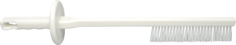 Щетка предназначена для чистки ножей измельчителей мяса, ломтерезок и другого измельчительно-режущего оборудования. Ворс хорошо проникает между ножами. Защитна чашеообразная накладка предохраняет руку оператора от попезов. Для использования этой щетки нет необходимости разбирать оборудование.