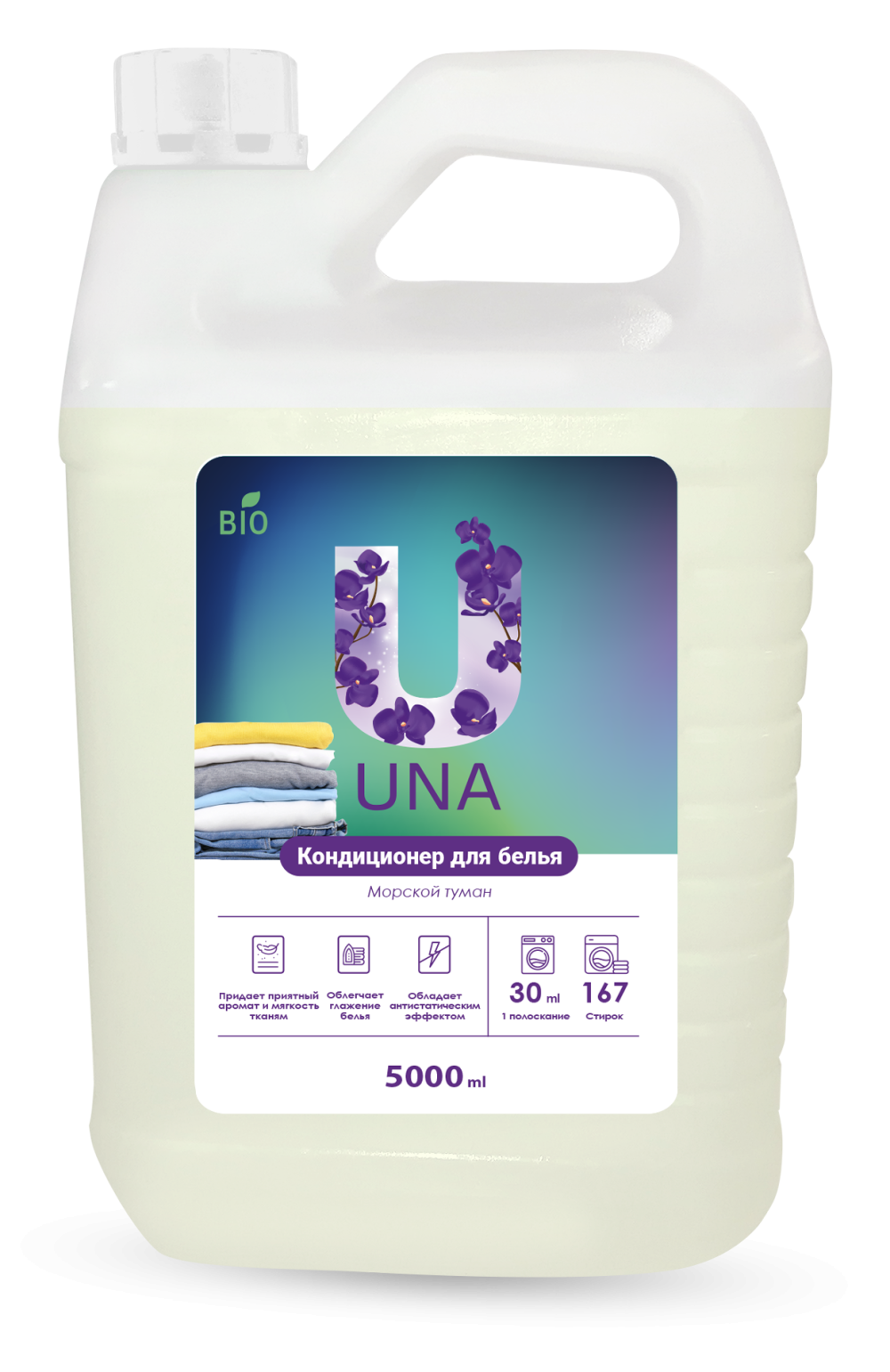 Кондиционер для белья UNA Морской туман. Идеально подходит для ручной и машинной стирки любых видов ткани. Придает белью мягкость и приятный аромат. Обладает антистатическим эффектом, после стирки облегчает процесс глажения.
