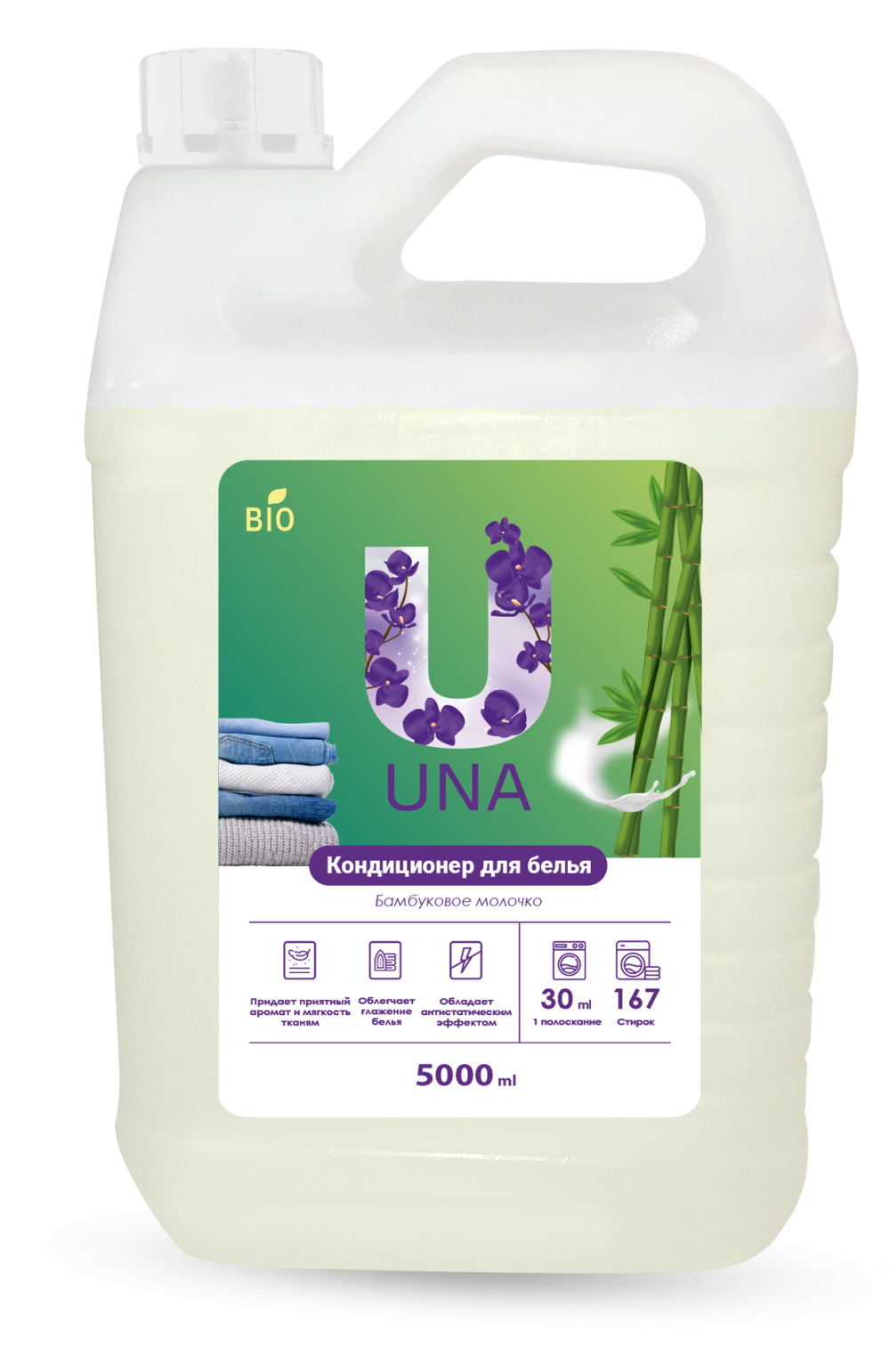 Кондиционер для белья UNA Бамбуковое молочко. Идеально подходит для ручной и машинной стирки любых видов ткани. Придает белью мягкость и приятный аромат. Обладает антистатическим эффектом, после стирки облегчает процесс глажения.