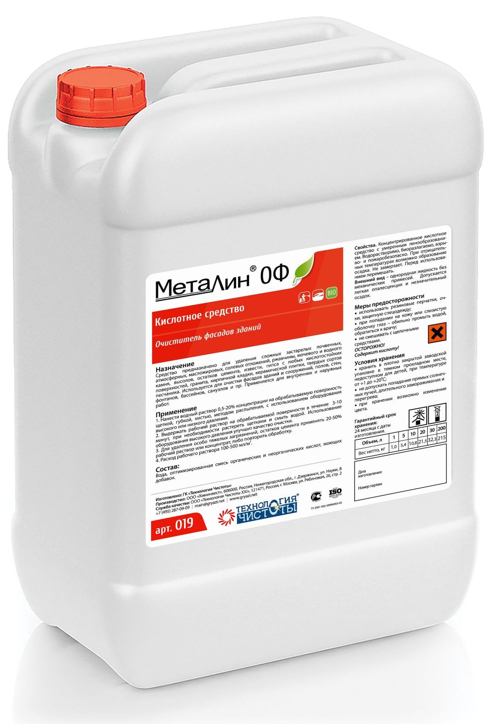 Вода, оптимизированная смесь органических и неорганических кислот, моющих и функциональных добавок. |