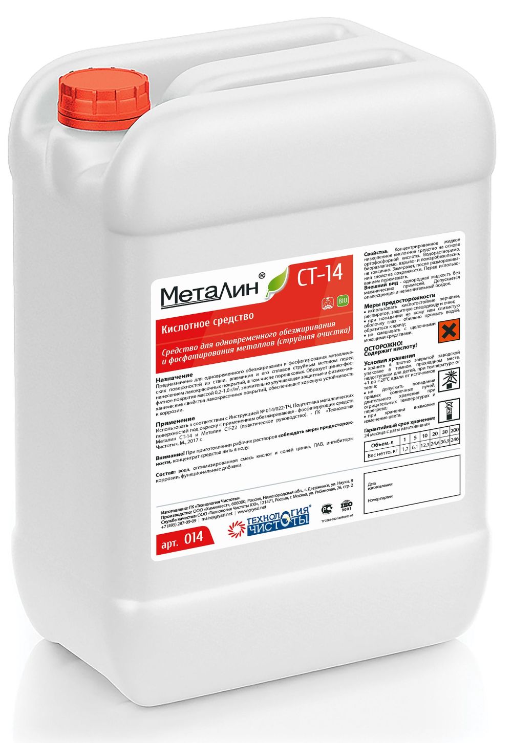 Вода, оптимизированная смесь кислот и солей цинка, ПАВ, ингибиторы коррозии, функциональные добавки. |