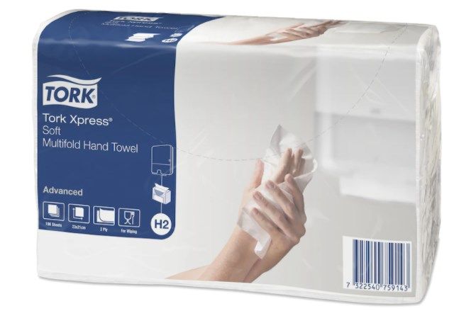 Tork Xpress® листовые полотенца Multifold мягкие высокого качества превосходно высушивают руки и обеспечивают комфорт вашим гостям. Для использования в диспенсерах Tork Xpress® для листовых полотенец Multifold, устанавливаемых в туалетных комнатах со средней проходимостью. Для установки диспенсера не требуется много места, он обеспечивает вашим гостям комфорт и высокий уровень гигиены.