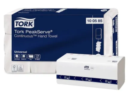 Tork PeakServe®: новый стандарт бумажных полотенец для туалетных комнат с высокой проходимостью, где персоналу необходимо максимально сократить время уборки и поддерживать оптимальный поток посетителей. Для использования с Tork PeakServe® листовыми полотенцами с непрерывной подачей . Tork PeakServe - cистема с самой высокой емкостью диспенсера (2100 полотенец). Дозирование полотенец происходит плавно и без задержек. Спрессованные пачки легко заправлять, хранить и перевозить, благодаря чему персонал может сосредоточиться на уборке, а не обслуживании диспенсеров.