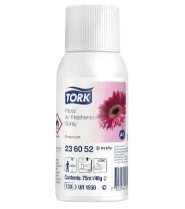 Эффективно и успешно контролируйте запах в туалетной комнате с цветочным аэрозольным освежителем воздуха Tork. Аэрозоль содержит концентрированные ароматические масла и запатентованные нейтрализующие запах вещества, которые устраняют неприятные запахи и долго поддерживают в помещении свежесть. Предназначен для использования в диспенсерах Tork для аэрозольного освежителя воздуха.