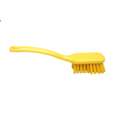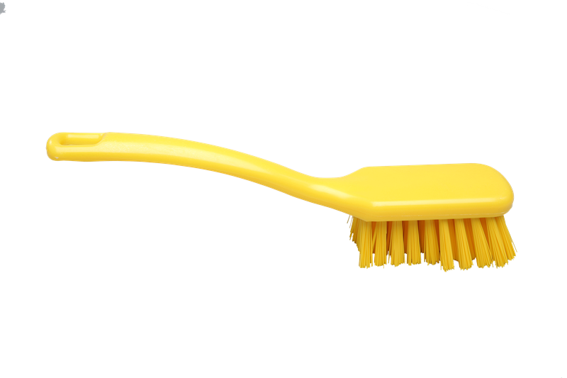 Прочная универсальная щетка. Эргономическая ручка делает щетку удобной для работы. Жесткая щетка подходит для выполнения самых разных задач, от мытья посуды до очистки сильно загрязненных кастрюль и других емкостей. Кроме этого, ее можно использовать для очистки оборудования и любых поверхностей.
