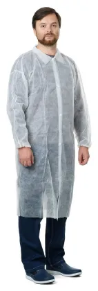 Одноразового использования. На кнопках. Рукава на резинках. Нестерильные. Нетканый материал. Область применения – универсальное использование, в медицине, на пищевом производстве, в чистых помещениях, в лабораториях.