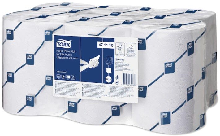 Электронный диспенсер для полотенец для рук Tork в рулонах обеспечивает полистовой отбор, уменьшая расход и повышая уровень гигиены. Рулоны Advanced имеют большую емкость, поэтому бумага никогда не закончится неожиданно. Они идеально подходят для туалетных комнат высокой посещаемости, например в школах и аэропортах.