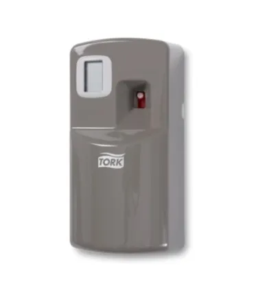 Tork диспенсер для аэрозольного освежителя воздуха серого цвета разработан специально для линейки Tork Image Design и отлично вписывается в туалетные комнаты с темной плиткой. Он проработан до мелочей, очень практичен и прост в обслуживании. Благодаря программируемым режимам распыления возможно использование в туалетных комнатах разной площади.
