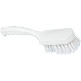 Универсальная щетка небольшого размера подходит для тщательной ручной мойки отдельных частей и деталей оборудования. столов и стен. Можно держать за ручку или за колодку.