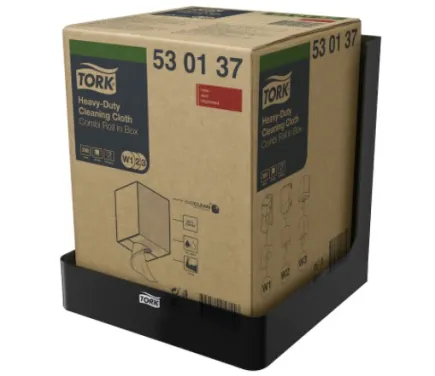 Настенный диспенсер Tork для протирочных материалов в рулонах в коробе с отборочным клапаном — это простой диспенсер открытого типа, специально разработанный для комби-рулона Tork в коробе.