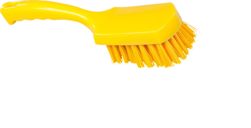 Универсальная щетка небольшого размера подходит для тщательной ручной мойки отдельных частей и деталей оборудования. столов и стен. Можно держать за ручку или за колодку.