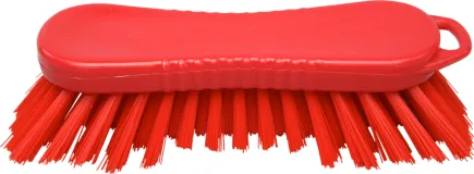 Универсальная щетка с вором, расположенным под углом, предназначена для чистки столов, конвейерных лент, разделочных досок, ведер, больших мерных ковшей и оборудования, где необходима очистка в углах.