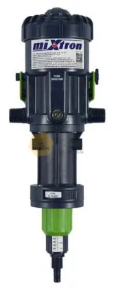 Объемный пропорциональный дозатор производства Италия. Все металлические компоненты выполнены из нержавеющей стали AISI 316, устойчивой к коррозии и механическим повреждениям. Дозаторы Mixtron в стандартной комплектации оснащены уплотнениями из материала Viton, совместимого с кислотами и различными типами хлорных соединений.