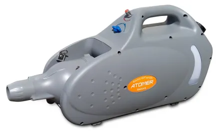 Генератор холодного тумана ATOMER RA04NS является самым современным, функциональным и удобным генератором тумана представленным на Российском рынке. Среди малообъемных аэрозольных генераторов ATOMER RA04NS обладает самым мощным двигателем в мире, что позволяет выполнять поставленные задачи значительно быстрее в сравнении с другими генераторами тумана. Форсунка центрифужного типа образует аэрозоль от 10 до 50 мкм. Угол сопла можно менять, а емкость агрегата не только внушительного объема (4л), но и устойчивая к воздействию химикатов. Активирует генератор реостатный выключатель для деликатного воздействия на обороты двигателя. Дополнительные преимущества — регулятор подачи раствора, длинный кабель, не ограничивающий возможностей (6 м) и ремень переноска для удобства использования.
