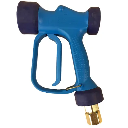 Размывочный пистолет RB 65 изготовлен из высококачественной латуни, стойкой к воздействиям химических средств и высоких температур воды. Он предназначен для использования на предприятиях пищевой промышленности, подходит для размывки загрязнений, очистки поверхностей и оборудования. Струя может быть прямой или конической с углом распыления от 0° до 60°, тип струи регулируется нажатием курка. Пластиковый корпус полностью герметичен, что позволяет избежать попадания грязи в механизм; по выступающим частям он имеет 3 защитных резиновых кольца для предотвращения повреждений. Материал ударопрочный, не подвержен выцветанию.