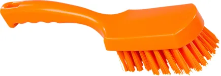 Универсальная щетка небольшого размера подходит для тщательной ручной мойки отдельных частей и деталей оборудования. столов и стен. Можно держать за ручку или за колодку.